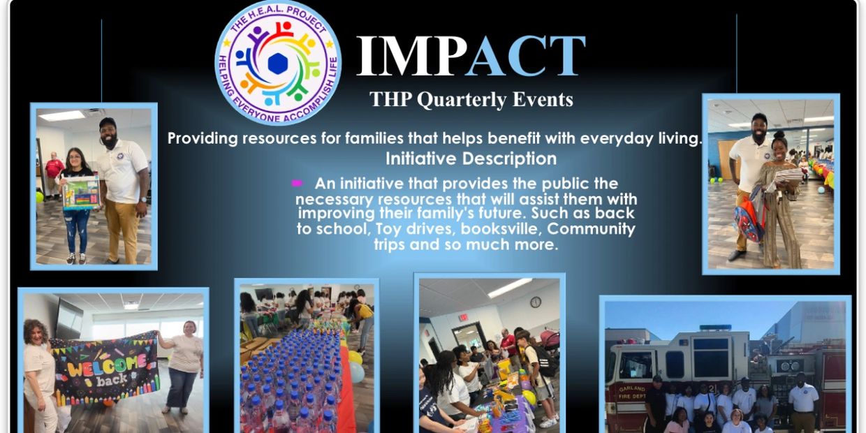 Here at THP we thrive off being involve within our communities and different organizations becoming a huge impact. With that being said we've made a program called IMPACT. Which is consisted of quarterly events we do every year to be more involved within the community. That will include HEALTRPS, BCK2SCHL, TOYDRIVES & so much more to come.